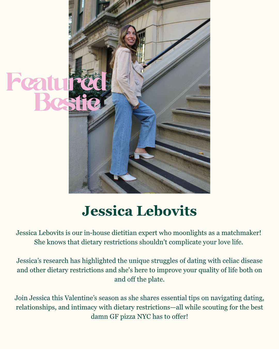 Jessica has been counseling patients for almost a decade through the Celiac Disease Center at Columbia University and her own private practice. Her mission is to help others enjoy life and food to the fullest!
